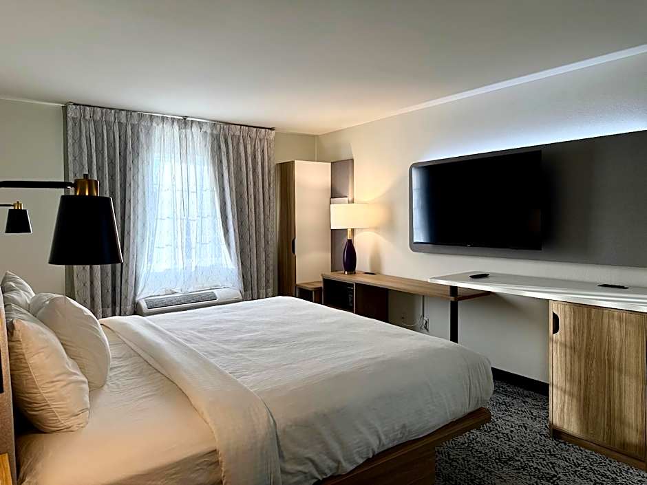 Experience ultimate comfort in our spacious 269 sqft King Room, designed for mobility access and non-smoking. Enjoy a king size bed, air conditioning, and free toiletries in your private bathroom, perfect for 2 adults and 1 child.